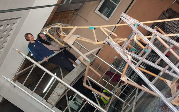 Par PASCAL ROBIN, publié le vendredi 20 mars 2026 09:19 - Mis à jour le vendredi 20 mars 2026 09:20Vendredi 20 mars à 8h, les élèves de 5e B ont rejoint Nicolas pour lancer le Roumequet 2026. Installés dans les hangars des services techniques, ils démarrent la construction : la structure est désormais trop grande pour passer sous le préau ! -